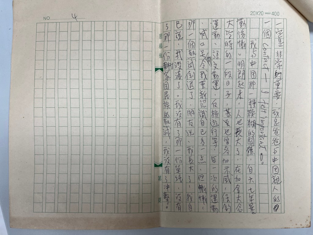 二胡婆婆於訪問開始時朗讀的文章原稿。
